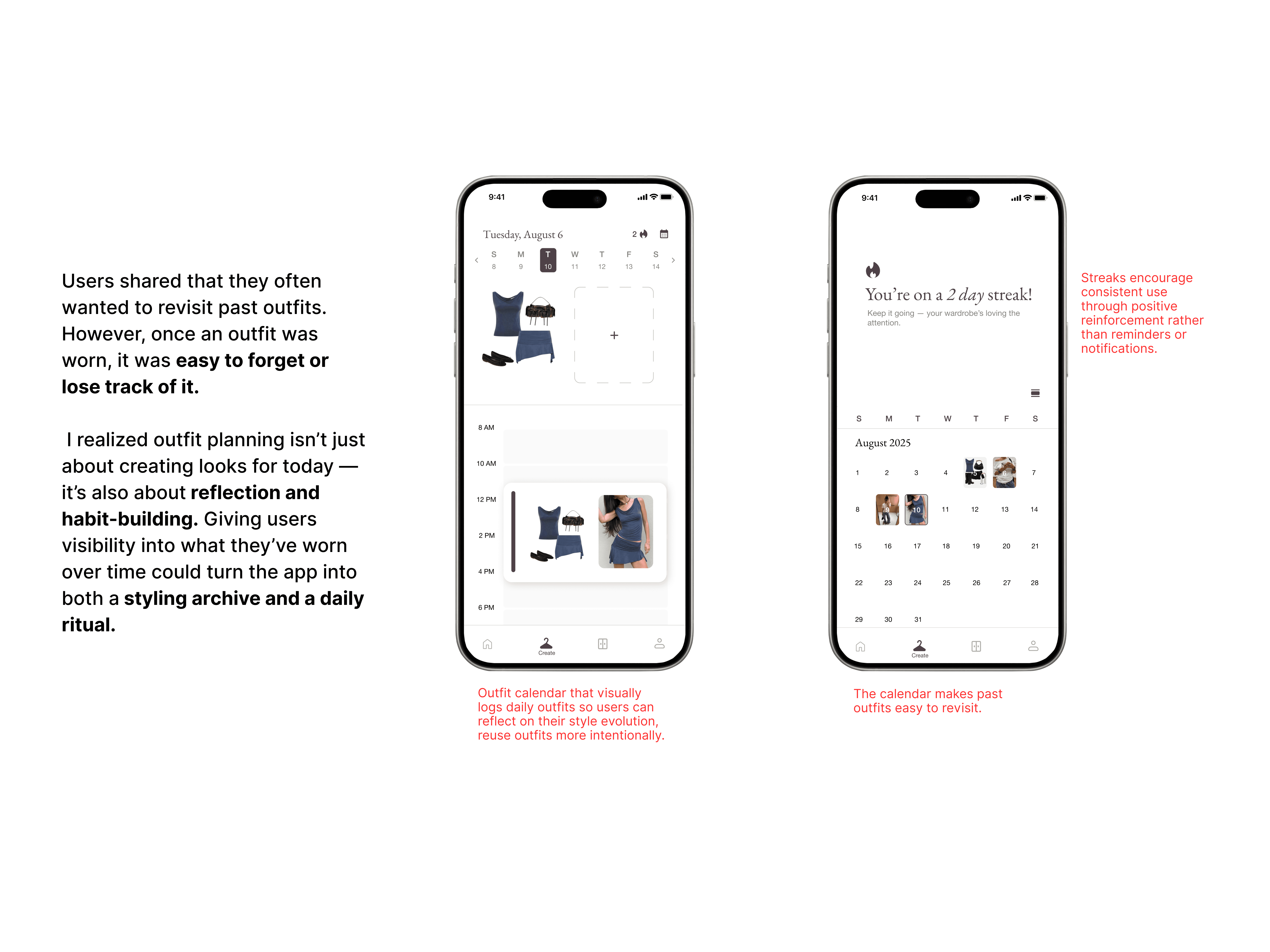 Users frequently forget about clothes they own or under-utilize their wardrobe, leading to unnecessary purchases and decision fatigue. Many people wear less than 50% of whatโs in their closet.
